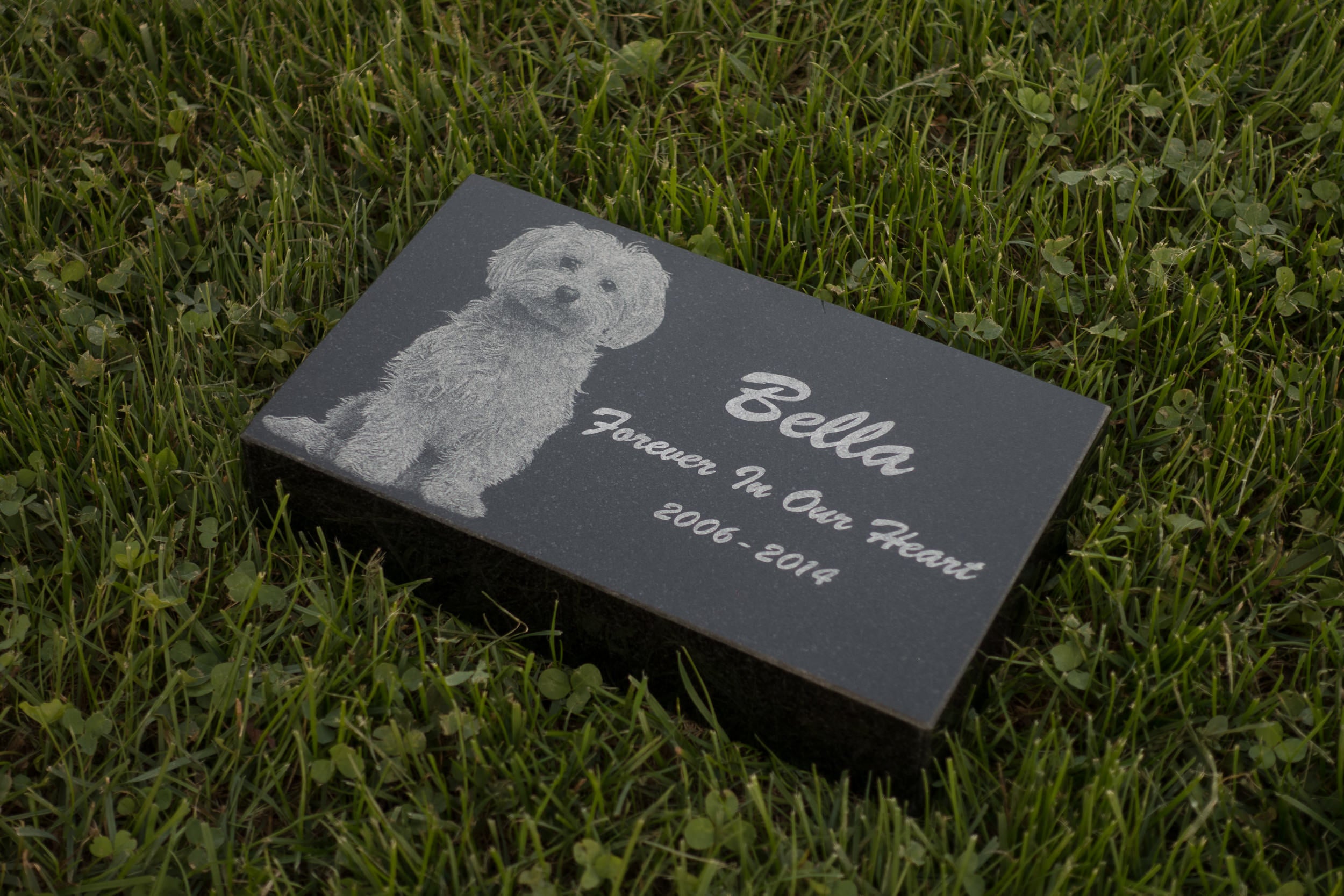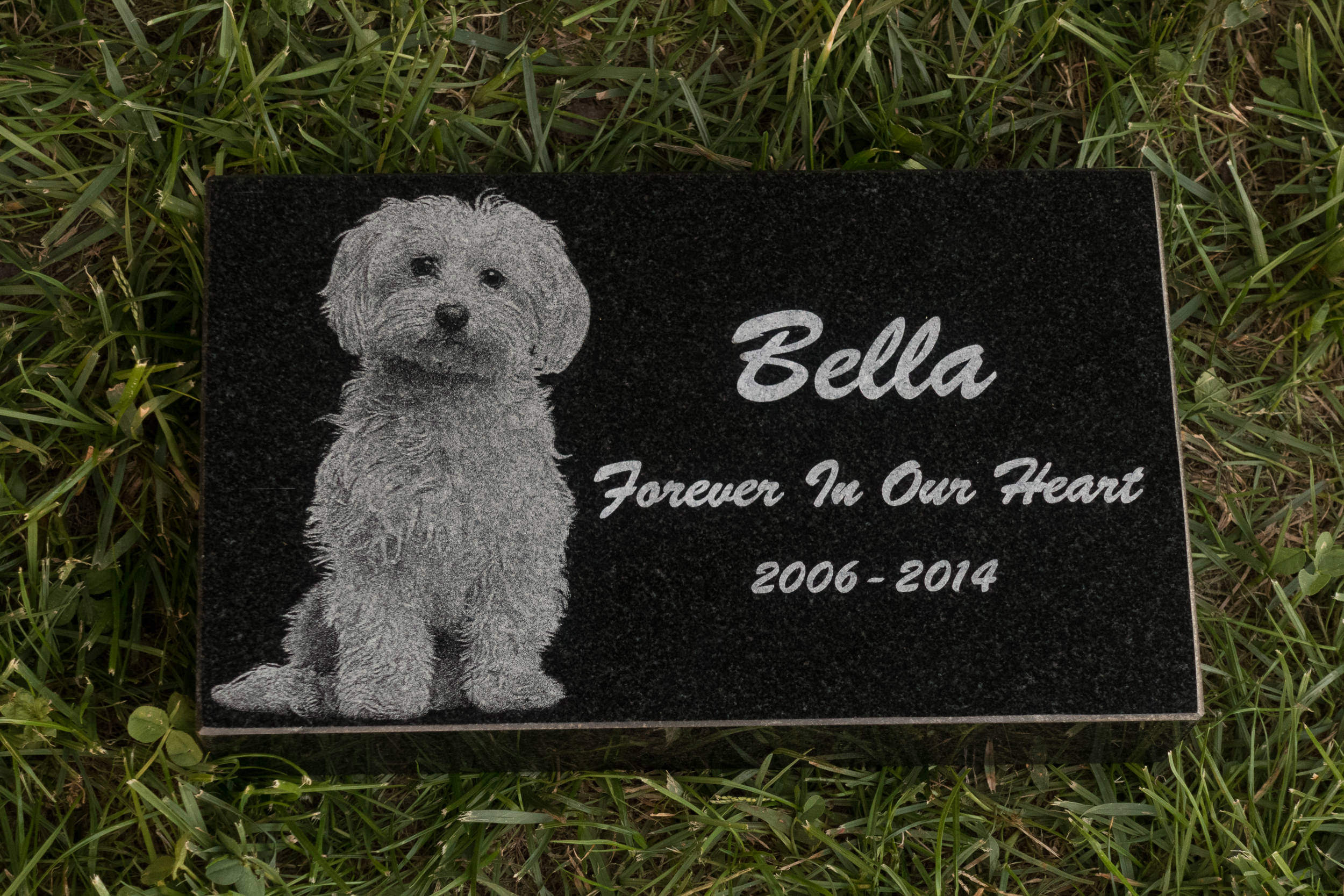 Black Granite - Measures 6" x 10" x 1" Polished Front/Sides - Back Unpolished Best to Lay Flat on the Ground Engraved Text & Photo of Your Pet Free Shipping ~ Ships in approx. 2 weeks